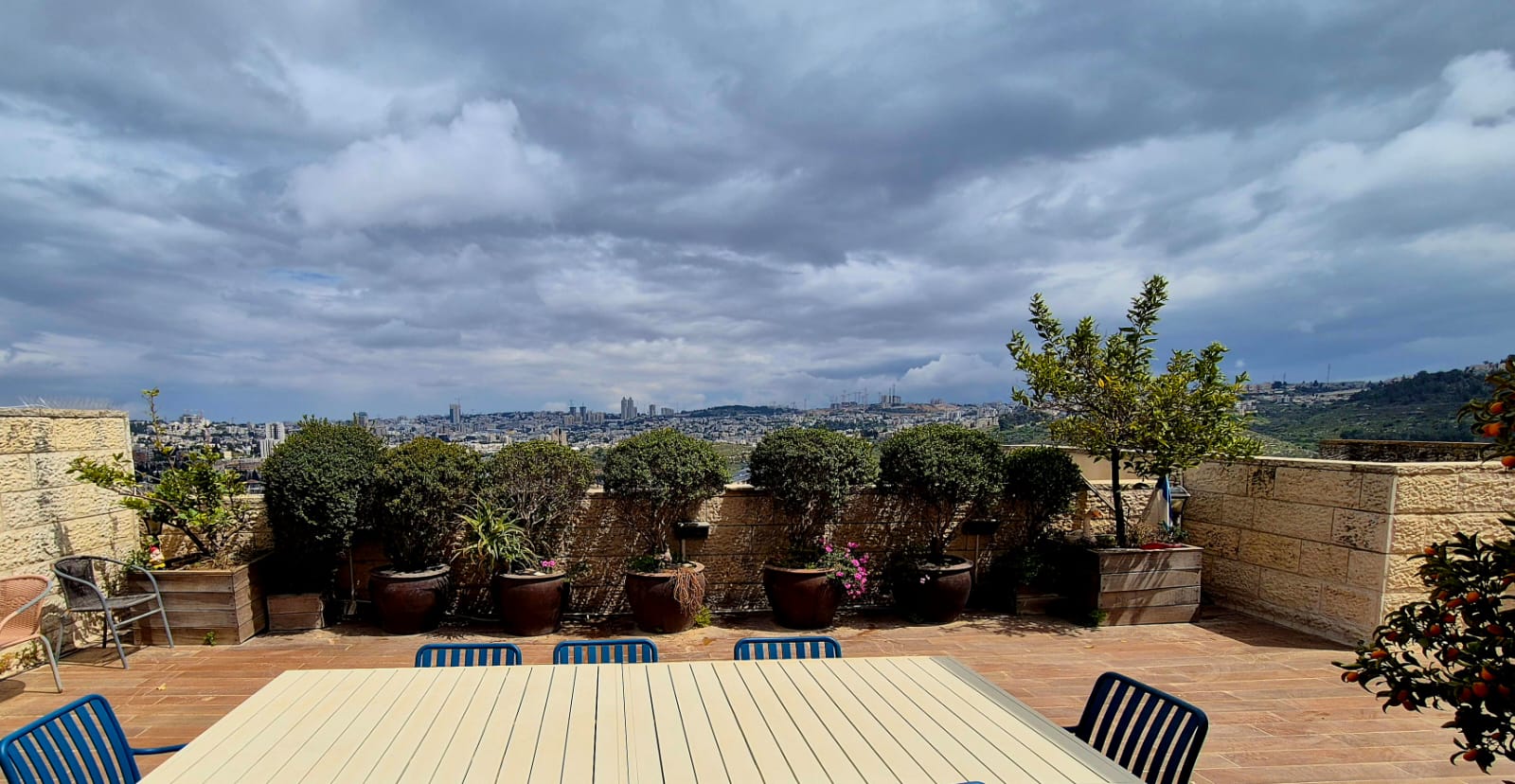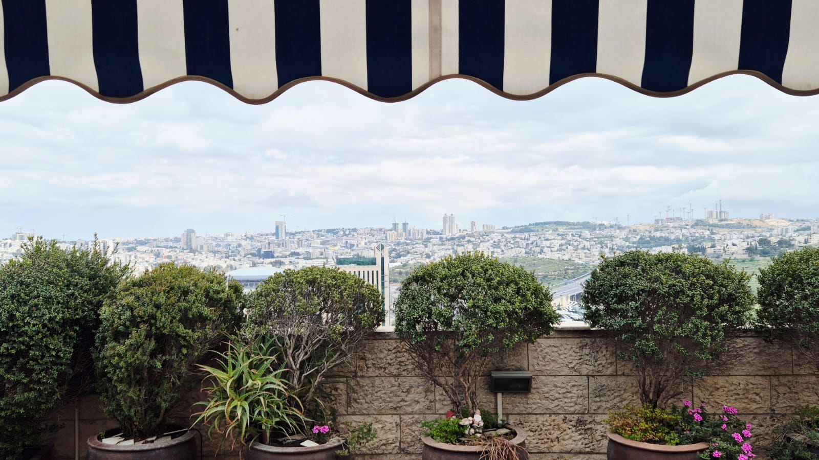 מרפסת גדולה מהסלון (60 מ"ר) משקיפה על נוף מרהיב ומרפסת גדולה (17מ"ר) מחדר ההורים .